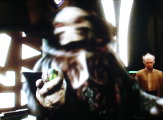 They sound pretty nasty. As it turns out one of Delenn’s own, Forell, has established contact with this new enemy [do these numb skulls ever learn?]. He holds her at laser point and demands she hears what the dreaded Drakh have to offer. How about pain, suffering and certain death for starters. What do you think? Forell is indeed in the running for one of Babylon 5's supreme bonehead awards. He's definitely right up there.