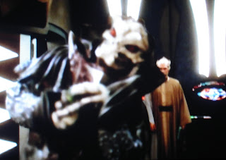He is concerned the warrior caste is getting too big for its own britches and the Drakh can help keep that group in check. Yeah, that’ll work like a hole in the head. So, the Drakh will help the religious caste. Uh-huh. They’re kind of like alien bodyguards. Huh!? Are you a fucking idiot? Does that emissary creature with its scary skull like face look like a face you can trust? Why in the name of the galaxy and all that’s holy [you are the religious caste] would you possibly turn to these creeps? They don't look like the religious type apart from the cloaks, but then that lends a kind of grim reaper vibe. Yeah, like I said, you're crazy!