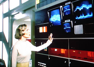 In Main Mission, Alpha control, we are treated to a small moment with that cute, little brunette Sandra Benes. With her unique accent she has a very Chekov quality about her. You can clearly sense the influence of Star Trek as Main Mission watches the view screen much like the crew of Star Trek watched theirs aboard the U.S.S. Enterprise. Still, let's be clear, there is a very special flavor and quality to Space:1999 as original and different as Star Trek but never achieving the same degree of acclaim for its outlook and vision of space. There is no question about it.