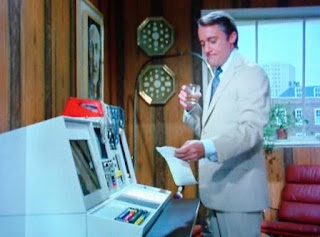 Welcome to the lived-in, reality of international live action Gerry Anderson style. Apart from UFO, this is a real first for Anderson on television who exited the comfort zone of science fiction and puppets for something more mainstream. It's interesting to see Vaughn in this persona. Rule contacts an off-sight location indicating he needs to use the computer to "crack" a code. Leave it to Anderson to incorporate a computer. It wouldn't be Anderson if there wasn't a computer. The breezy sounds of a slick 1970s score sweeps along in Rule's residence as he slips into a suit jacket. Rule is Mr. Cool. Rule's computer spits out a read out. A child's picture sits near a train set. Could it be his son?Rule meets with Contessa Caroline di Contini [Nyree Dawn Porter]. Here's a nice exchange between Rule and Contini regarding the status on "the team."