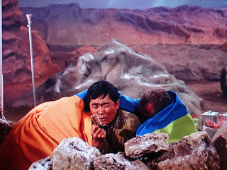 Love those violins. Ah the struggle for survival. Sulu reports in and it is 70 below and somehow he is still alive. Yeah, I'd say that's a minor miracle considering he has nothing covering his face to protect himself from the blistering cold.