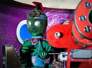 Martian Invasion has little to do with actual real Martians or aliens. It's almost refreshing when you consider UFO (1970-1973) and Space:1999 (1975-1977) as Anderson productions. The Martians here are simply part of a science fiction film production. The film being produced features Martians attacking two police officers. With the set sabotaged by the sinister Hood two of the actors lives are jeopardized and International Rescue is called in to save the day.