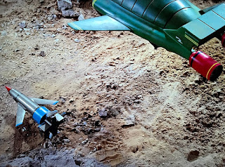 Thunderbirds 1 and 2 are spotlighted here complemented by Pod 5 and the Excavator on display here to shine.