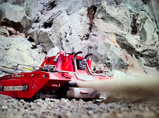 As always the special vehicles of Thunderbirds have their moments in the sun. To date we've enjoyed the Elevator Cars (S1 E1 Trapped In The Sky), Recovery Vehicles (S1 E2 Pit Of Peril), The Firefly (S1 E3 City Of Fire), the Transmitter Truck (S1 E4 Sun Probe), The Mole (in some of the aforementioned episodes), and now finally the Excavator, the most exciting pod vehicle since those aforementioned. The machine digs, grinds and essentially spits out the powdered by-product through its ass end rear pipes until it inevitably reaches the water where the two trapped men are minutes away from drowning. Always a thrill.