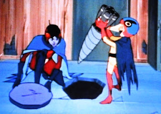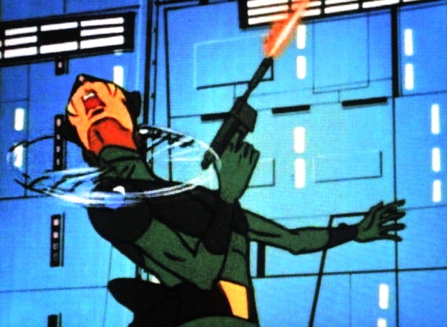 It's worth reminding that Keyop, with his blips and bleeps, is considered an artificial child in the stateside version of Tatsunoko's Science Ninja Team Gatchaman well known here as Battle Of The Planets. The character is actually alleged to be just a ten year old boy in the original version. Think about that for a minute if you have kids? He's a ten year old assassin. Keyop's Science Ninja Team Gatchaman Japanese counterpart was named Jinpei and was essentially a normal human child with a tendency to get into trouble, as he almost does here.