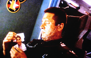 On Earth, Sheridan sits before Lefcourt. Sheridan is so well-groomed and looks so young. He looks like a pup compared to his last meeting with Lefcourt. Make-up is a wonderful thing. We certainly understand their relationship based upon some of what we learned in Season Four, Episode 20, Endgame. Lecourt assigns Sheridan as first officer of the mission to Minbari space on the Prometheus. Sheridan protests mildly indicating the Captain of the ship does not handle "first contact situations" well. It does not go well. This is a good sequence.